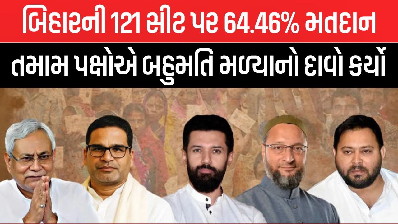 બિહારમાં પ્રથમ તબક્કાની 121 બેઠકો પર 64.46% મતદાન નોંધાયું છે — જે રાજ્યના ચૂંટણી ઈતિહાસમાં એક નવો રેકોર્ડ માનવામાં આવી રહ્યો છે.જો બીજા અને છેલ્લાં તબક્કાની 122 બેઠકો પર...